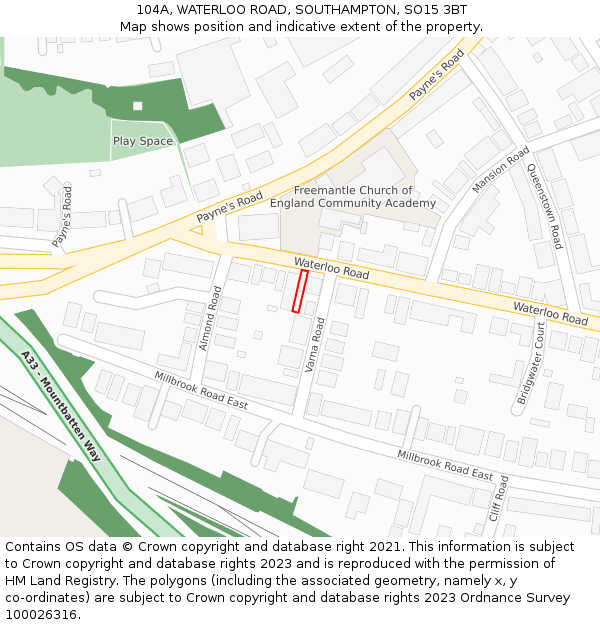104A WATERLOO ROAD is located in SOUTHAMPTON, in the SO15 postcode district. The below map shows the position of No. 104A on WATERLOO ROAD.