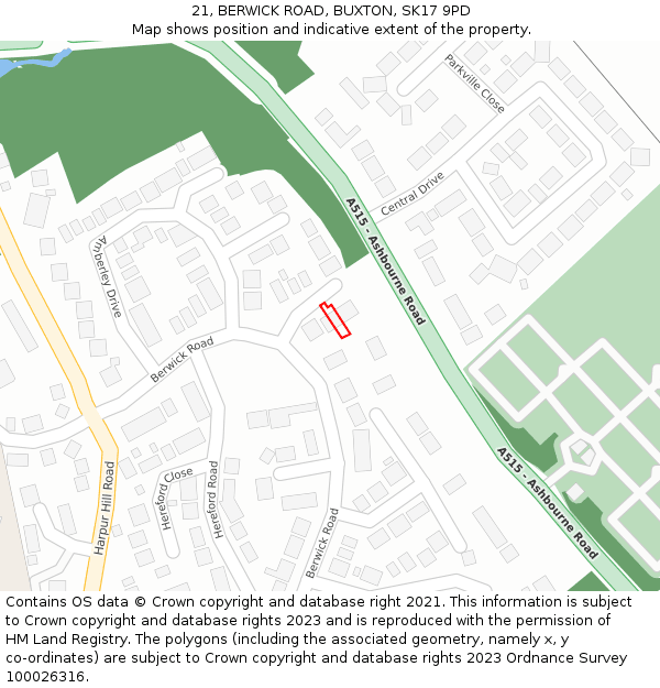 21 BERWICK ROAD is located in BUXTON, in the SK17 postcode district. The below map shows the position of No. 21 on BERWICK ROAD.