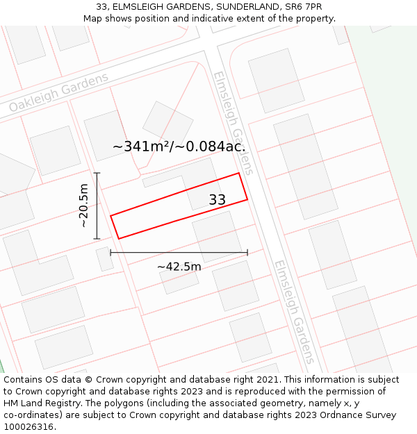 33 ELMSLEIGH GARDENS sits on a plot of roughly 0.084 of an acre, or 341m². The below map shows the location of 33 ELMSLEIGH GARDENS, an approximate outline of the building(s), and the indicative extent of the property. The plot extent is a Land Registry INSPIRE Index Polygon, and it is important to note that a title may include more than one polygon, whereas only one polygon is shown on the map (the polygon which intersects with the position of 33 ELMSLEIGH GARDENS). The full extent of the land contained in any registered title can only be identified from the individual title plan. The maps on this page should not be relied upon to establish the extent of a title.