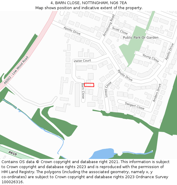 4 BARN CLOSE sits on a plot of roughly 0.063 of an acre, or 255m². The below map shows the location of 4 BARN CLOSE, an approximate outline of the building(s), and the indicative extent of the property. The plot extent is a Land Registry INSPIRE Index Polygon, and it is important to note that a title may include more than one polygon, whereas only one polygon is shown on the map (the polygon which intersects with the position of 4 BARN CLOSE). The full extent of the land contained in any registered title can only be identified from the individual title plan. The maps on this page should not be relied upon to establish the extent of a title.