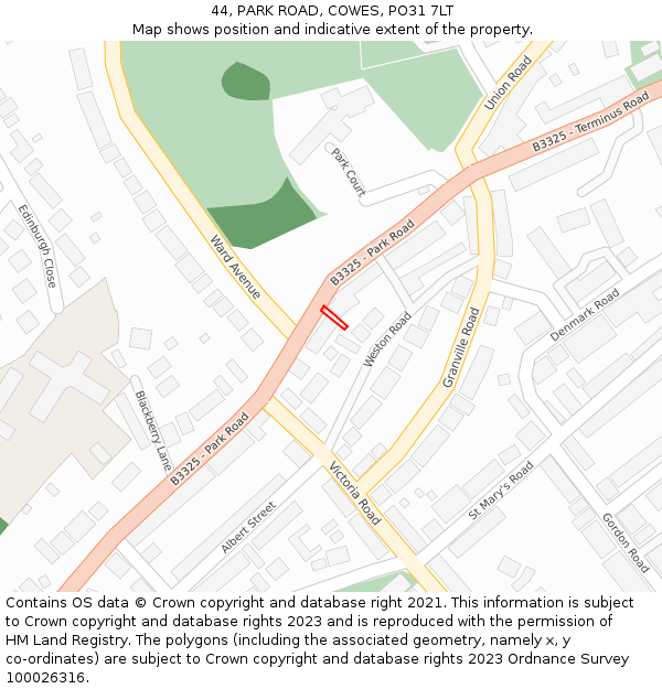 44 PARK ROAD sits on a plot of roughly 0.022 of an acre, or 88m². The below map shows the location of 44 PARK ROAD, an approximate outline of the building(s), and the indicative extent of the property. The plot extent is a Land Registry INSPIRE Index Polygon, and it is important to note that a title may include more than one polygon, whereas only one polygon is shown on the map (the polygon which intersects with the position of 44 PARK ROAD). The full extent of the land contained in any registered title can only be identified from the individual title plan. The maps on this page should not be relied upon to establish the extent of a title.