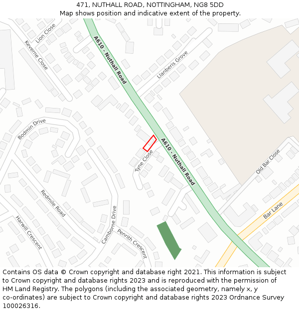 471 NUTHALL ROAD sits on a plot of roughly 0.059 of an acre, or 237m². The below map shows the location of 471 NUTHALL ROAD, an approximate outline of the building(s), and the indicative extent of the property. The plot extent is a Land Registry INSPIRE Index Polygon, and it is important to note that a title may include more than one polygon, whereas only one polygon is shown on the map (the polygon which intersects with the position of 471 NUTHALL ROAD). The full extent of the land contained in any registered title can only be identified from the individual title plan. The maps on this page should not be relied upon to establish the extent of a title.