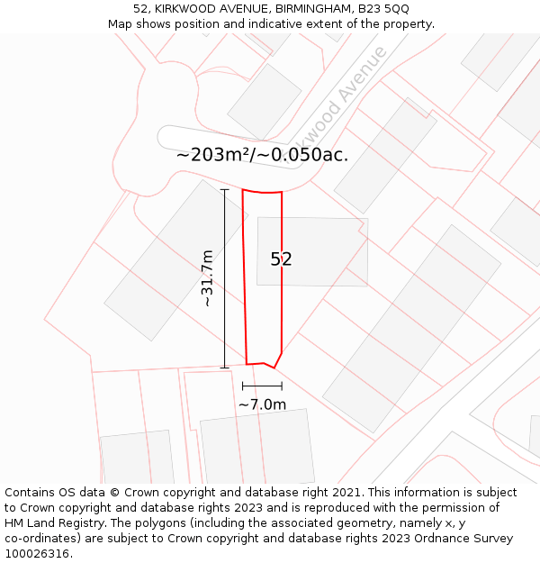 52 KIRKWOOD AVENUE sits on a plot of roughly 0.050 of an acre, or 203m². The below map shows the location of 52 KIRKWOOD AVENUE, an approximate outline of the building(s), and the indicative extent of the property. The plot extent is a Land Registry INSPIRE Index Polygon, and it is important to note that a title may include more than one polygon, whereas only one polygon is shown on the map (the polygon which intersects with the position of 52 KIRKWOOD AVENUE). The full extent of the land contained in any registered title can only be identified from the individual title plan. The maps on this page should not be relied upon to establish the extent of a title.